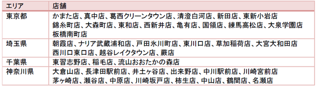 ドライブスルー対応店舗:東習志野店・船橋三山店、朝霞店、井土ヶ谷店、板橋南町店