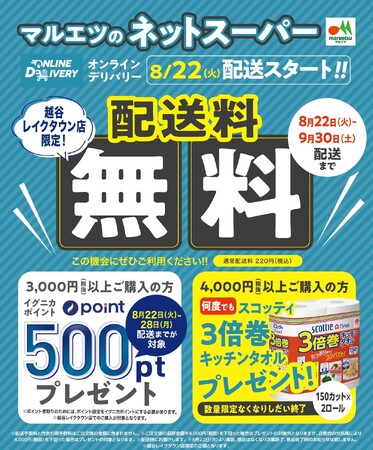 マルエツ 越谷レイクタウン店の配送エリアとキャンペーンについて