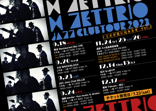 現在、H ZETTRIOは全国Jazz Club Tour真っ只中で、直近では9月18日(月・祝)熊本、9月20日(水)大分、9月23日(土)山口、9月24日(日)福岡での開催が決まっている。
