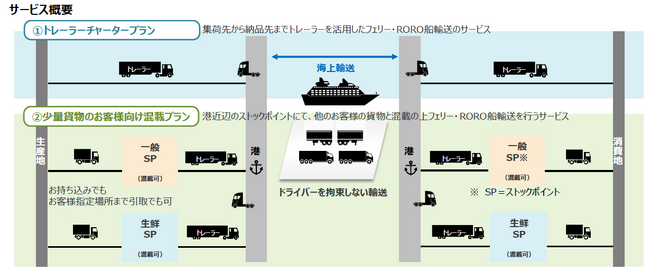 尚、本サービスは最速のフェリー便を活用しますので、現行の輸送リードタイムを維持可能です。(※集荷先・納品先によっては要ご相談)