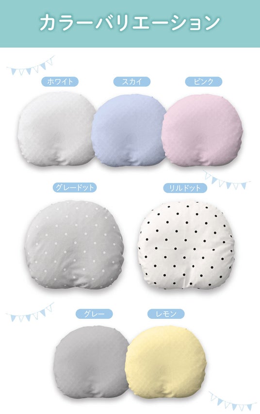 カラーバリエーション7色:ホワイト、スカイ、ピンク、グレー、レモン、リルドット、グレードット