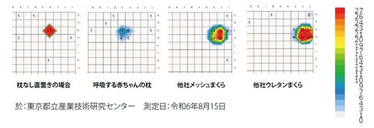 特長2 抜群の通気性『呼吸する赤ちゃんの枕スライド式』では枕の中