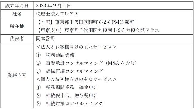 この度、2023年9月1日に「税理士法人プレアス」(本店所在地:東京都千代田区)を設立いたしましたので、ご報告させていただきます。