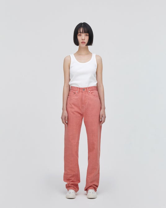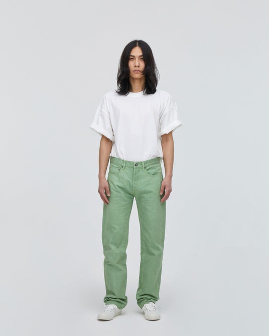 環境に配慮された天然染料による、繊細な発色の21色展開。ヒップ&レッグがもたつかないスタイリッシュなシルエットを実現したセルヴィッチデニム。