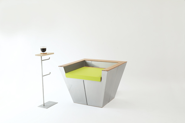 ベッドの横にトイレを置かなければならない状況の時、そのままトイレが置いてある事で心が折れてしまう人もいます。そこで1人掛けソファにバイオトイレを内蔵した『torch toilet』を制作しました。