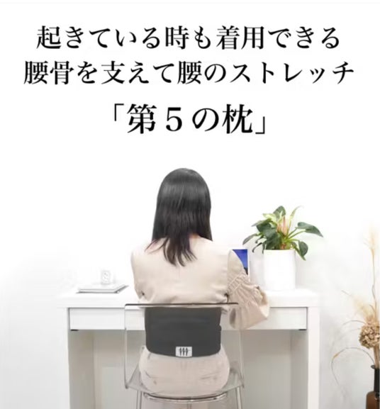 寝ている間に腰のストレッチができる枕。睡眠に関する数々の学術論文を発表するなど「眠りの専門研究」で定評のある「エスアンドエーアソシエイツ」と共同で開発。起きている時も着用し腰骨を支えて腰のストレッチ。