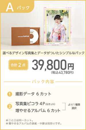 おすすめの商品の残し方としては年賀状にも使えるデータ付きのパック商品です。撮影した中からお好きな30枚を選ぶことができるAパック39,800円(税込43,780円)や撮影全データと写真集、プレゼントにも使えるフレームやキーホルダーが付いたBパック59,800円(税込65,780円)が人気です。