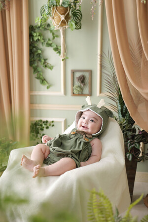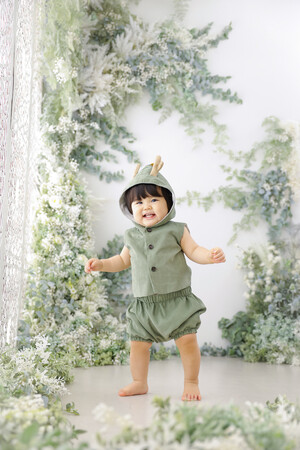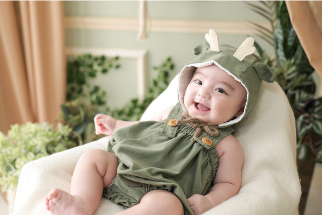 干支をモチーフにしたデザインで、自社のデザイナーが細部までこだわった特別なコスチュームです。自分のお子様をかわいく撮りたいというニーズにお応えして、「笑顔になれる衣装」を目指して開発いたしました。