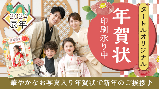 タートルでは行事の記念撮影だけではなく、「思い出を残す大切さ」を皆様に伝えるために、毎年干支の新作衣装の開発をするなど、年賀状撮影にも力をいれております。お宮参りやバースデー撮影がまだの方はもちろん、着ぐるみだけの撮影もお待ちしております。