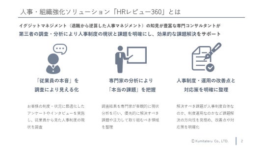 クミタテルが提供する人事・組織強化ソリューション「HRレビュー360」の概要