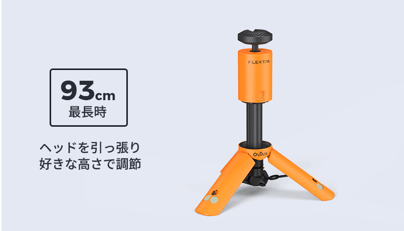 テーブルの上など狭い範囲を照らしたい時はポールを伸ばさない「小三脚」として、暗闇の野外を広範囲で照らしたい時はポールを伸ばした「大三脚」としてお使いいただけます。