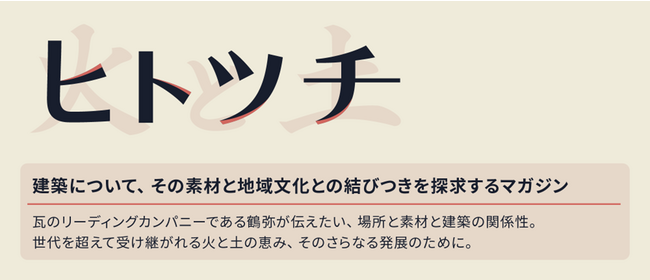 ヒトツチは株式会社鶴弥が運営するウェブメディアです。古いと思われがちな瓦という建材について、現代の建築家たちがどのように感じ、どのような活用に取り組んでいるのか。