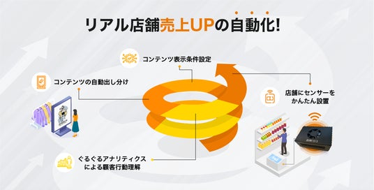 Oxyzenでは長い間、オフライン社会の集団の動向を独自のWi-Fiセンサー技術により、個人を特定しない情報のみで分析してきました。その中でオフラインのリアル社会に多数存在するデジタルサイネージとの親和性に着目し大小さまざまなデジタルサイネージの効果測定サービスを展開しており、導入も着実に増えています。 また、オンラインの世界では既にさまざまなツールを用いてマーケティングが自動化されつつありますが、一方オフラインのリアル店舗はまだまだマーケティングの自動化に至っているとは言えません。とりわけ、デジタルサイネージの導入も進んでいますがそのほとんどは同じコンテンツを繰り返し流しているに留まっています。 そのような中で、Oxyzenが培ってきたノウハウや国際特許技術をふんだんに取り入れ、オフライン社会とオンライン社会とをシームレスに融合し、リアル店舗のDX化が可能なマーケティングオートメーション(MA)ツール、『店舗ぐるぐる』が誕生しました!