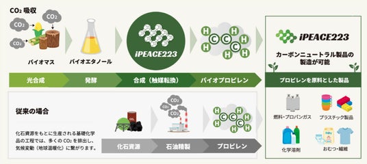 iPEACE223は、2025年のベンチプラントでの技術実証に向けて事業を進めており、今回の資金調達、および日本化薬との共同研究により、バイオエタノールを原料としたバイオプロピレン製造技術の実用化に向けた取り組みを加速させ、脱炭素社会の実現に貢献してまいります。