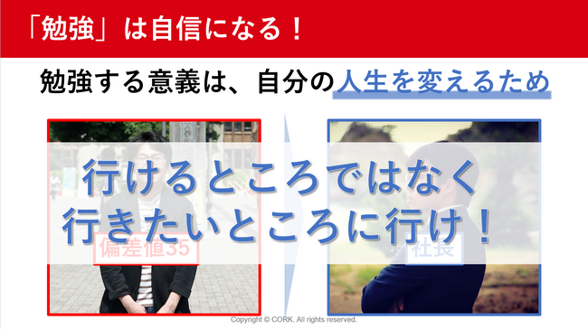 学校の抱える課題感に応じて、独自の勉強法と思考法で、偏差値35から逆転合格を果たした西岡壱誠が、自身の経験からお話します。
