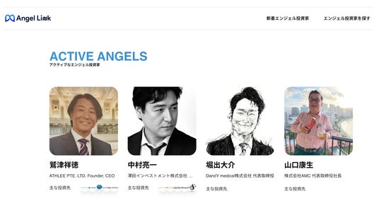 3.トップページに現在投資意欲のあるアクティブなエンジェル投資家がランダムに表示されることで新たな出会いを創出。