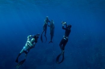 本作は、撮影陣もまた70mの潜水能力を持つ熟練のスピアフィッシャーで構成されています。