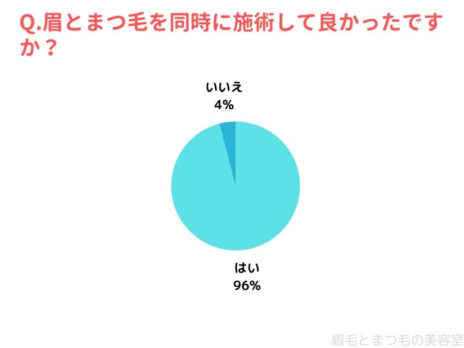 眉毛サロンで、眉スタイリングとまつ毛パーマを同時に施術して良かった人は「はい(96%)」、「いいえ(4%)」という結果になりました。
