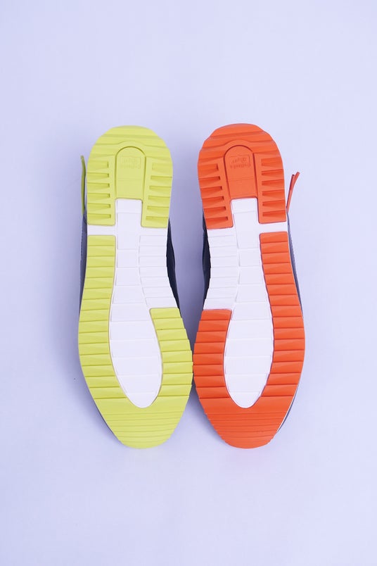 ソールとシューレースをアシンメトリー配色にすることでミニマルな印象の中に特徴を与えた、日常生活のあらゆるシーンで活躍するシンプルで洗練されたデザイン。