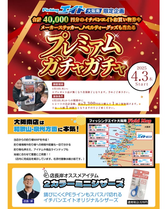関西最大級の品揃え、イチバンエイトグループでは、「春の釣具フェア」を4月3日より開催!