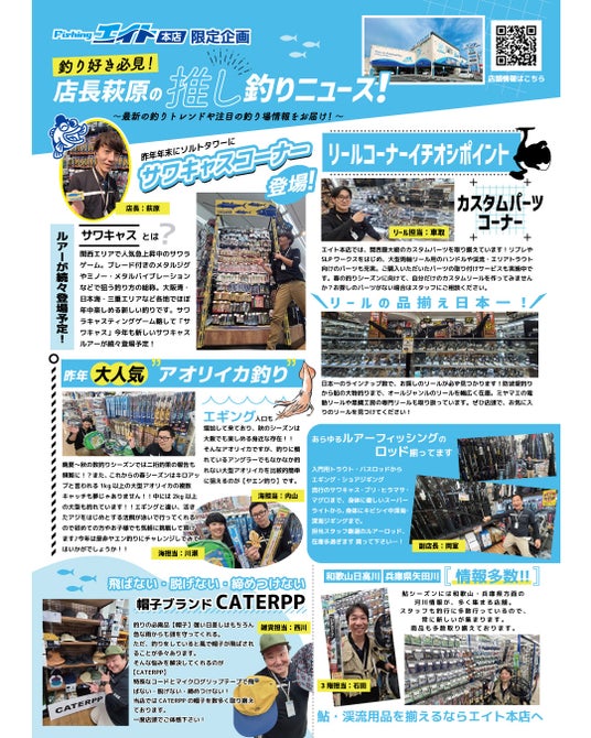 磯・船・波止・投げ・筏・海上釣堀・へら・鮎からルアーのバス・ソルトまで、何でも揃い、