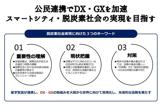 また、2025年大阪・関西万博のテーマ「いのち輝く未来社会のデザイン」が目指すSDGsの具現化、そして2030年のSDGsの達成に貢献するべく、DX・GXに資する“民×民” “公×民”の取組みをさらに加速させ、スマートシティ・脱炭素社会の実現を目指します。