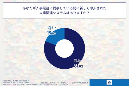 アルドーニ株式会社(本社:東京都中央区、代表取締役:永見 昌彦)は、この度、人事業務担当者332人を対象に、人事関連システムの活用メリットおよび課題に関する調査を実施しましたので、お知らせいたします。