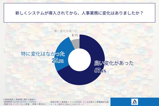 全体の7割近くが「良い変化があった」と回答していることから、多くの企業で新しいシステムがプラスに働いていることが伺えます。