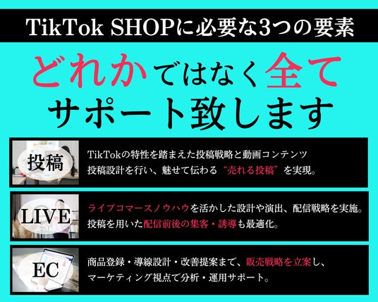 LiveL代表社員の佐藤ヤスタカ氏は「TikTok Shop市場の二極化が進む中、企業が確実に成功できる支援体制の構築が急務でした。Trinity Baseにより、多くの企業様の売上成長に貢献したい」とコメントしている。