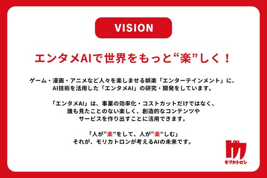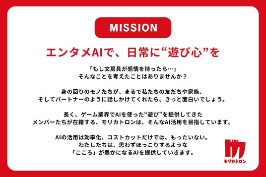日本初の“エンタメAI”を開発・研究しているモリカトロンは、コーポレートサイトをフルリニューアルしました。また、合わせてミッション・ビジョンの策定やビジネスパートナーの募集を開始しました。