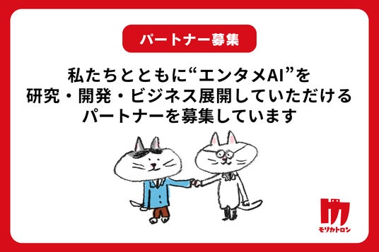 「エンタメAI」開発のさらなる技術力アップと開発スピードの加速のために、共に成長・発展に向けて努力し合えるパートナー様の募集を開始いたしました。モリカトロンが掲げるやミッション・ビジョンに共感していただき、世界に対して一緒にチャレンジしていただける会社様、研究室などがありましたら、ぜひお問い合わせください。