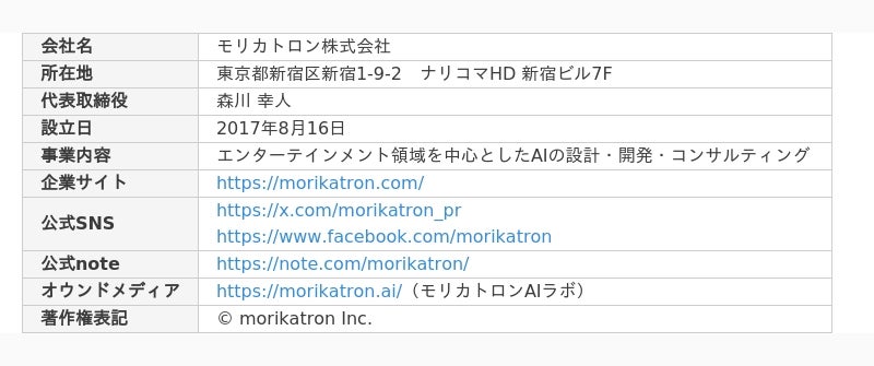 ・エンタメAI開発 :https://morikatron.com/ai-contract-business
