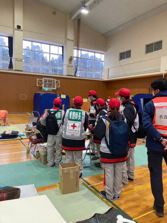 赤十字社の健康調査。各避難所に医療者が訪問できる機会は限られている。自宅に戻った被災者には届かない。
