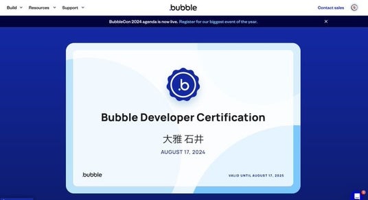 " Bubble公式が認定している唯一の認定資格となります。Bubble認定開発者になることは、優れた仕事を行うために必要なスキル、才能、および Bubble のプラットフォームに対する包括的な理解を持っていることを客観的に証明する方法です。