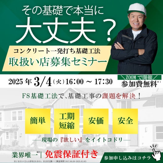 「FS基礎工法」は弊社代表(猪野明彦)による無料セミナーを2回開催いたしました。(一般地域向け:2025年3月4日 凍結深度対応地域向け:2025年4月15日)