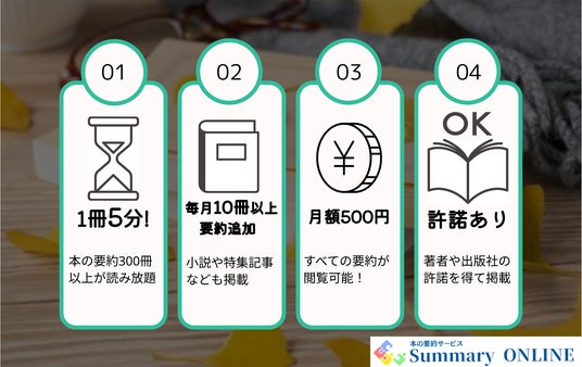 すべての要約は、ライターが実際に本を読んで執筆し、著者・出版社の許諾を得て掲載しています。