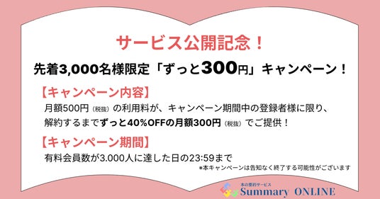 サマリーオンラインはリリース記念として以下のキャンペーンを実施いたします。