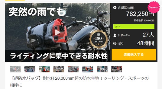 プロジェクト名:【超防水バッグ】耐水圧20,000mm超の防水生地!ツーリング・スポーツの相棒に