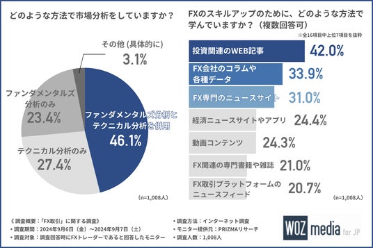 今回の調査で、FXに関する情報収集とスキルアップのための学習方法として、投資関連のWEB記事を利用していることが明らかになりました。FXを始めた理由として、約7割が資産運用のためと回答し、老後資金の確保や少額から始められることが重視されていることが示されました。