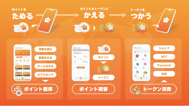 「スマートポケット」は、NFTのコレクションやマンガ、ゲームなどを通じてポイントやトークンを獲得できる新時代のポイントアプリです。ポイントは様々なNFTやデジタルアイテムの購入、ゲームやクーポンで使用可能です。Twitterのフォロワー数は13万人を超え、事前登録のベータ版WEBアプリはユーザーが世界100ヵ国を突破しています。