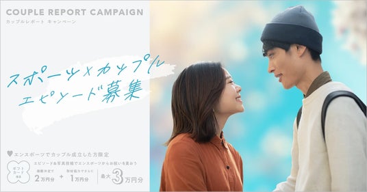 エンスポーツで出会ってカップルになったお二人の、幸せなエピソードが詰まったレポートを募集しております。掲載が決定したカップルには、もれなくギフト券をプレゼントいたします。