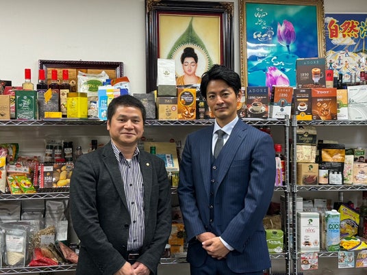 (画像左から)ベトナム大使館商務部 参事官:タ・ドク・ミン様、橘商事株式会社 代表:齊木幸太郎