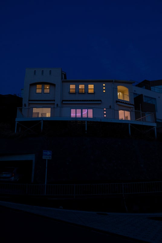 早朝の静かな時間帯は、空間に優しい青が広がり、夕暮れ時には、夕陽の柔らかな金色に包み込まれます。太陽が沈み明かりを灯せば、ふんわりと眠りを誘うような温かみのある空間となります。