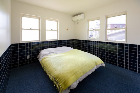 2階ROOM1ゲストルームは、青い空間が海に溶け込むような体験を生み出します。(C)白井晴幸