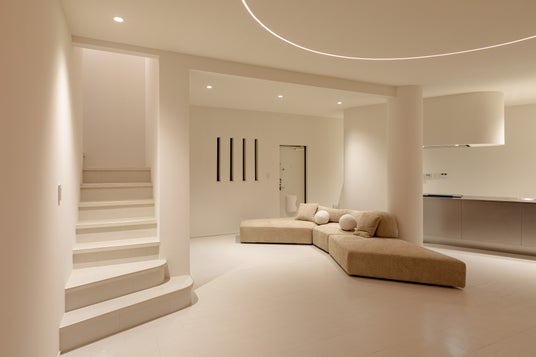 スタジオとしての機能を兼ね備える為、全体に光が回る白色と、シチュエーションに合わせられる照明を計画しました。