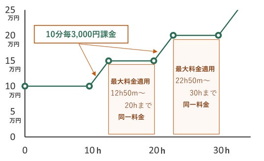 利用時間に応じて自動的に適用される定額料金により、事前にコストの見通しが立てやすく、無駄なく導入できます。