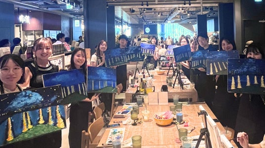 Artbar Osakaは、都会の真ん中でワインを片手に絵を描く大阪初のPaint & Sipスタジオ。手ぶらで来店いただき、リラックスした雰囲気の中で、ゴッホやモネなどの名画や、季節に合ったオリジナル作品を描くことができます。経験豊富な現役アーティストを中心としたインストラクターが丁寧にサポートするため、初めての方でも安心してご参加いただけます。2時間のワークショップで完成した作品は、その日のうちにお持ち帰りいただけます。