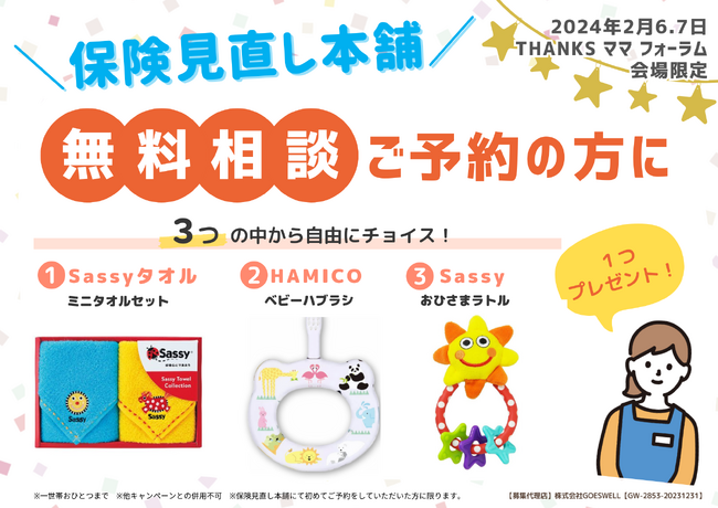 保険代理店関連事業を営む株式会社NFCホールディングス(本社:東京都新宿区/代表取締役社長:臼井朋貴)は、子会社の保険ショップ「保険見直し本舗」を運営する株式会社GOESWELL(本社:東京都新宿区/代表取締役社長:藤森武志)において、2024年2月6日および2月7日の2日間、有明ガーデン/東京ガーデンシアターにて開催される「THANKSママフォーラム」に、「保険見直し本舗」ブースを出展いたします。