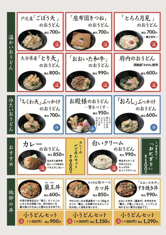 社会福祉法人博愛会(本部:大分県大分市 理事長:釘宮卓司)は「ふ」っとするうどん店「府内のおうどん」を大分市役所に隣接する複合公共施設『荷揚リンクスクエア』に4月8日グランドオープンします。「ふ」っとするは、「ふう」っと心が安らぐ、美味しくて「ふ」っと笑顔がこぼれる場所の事です。讃岐うどん学校で研鑽を重ねた職人が、試行錯誤を重ねながら完成した自家製麺を使用。出汁と素材にこだわり尽くし「おおいた和牛」「座布団きつね」「白いクリーム」のうどんや、地卵を使用した「蘭王丼」など、ここでしか食べる事のできない特別メニューを提供します。杵築市で大人気の牡蠣小屋「KITSUKI TERRACE」を手掛けた人気のグラフィックデザイナー長内研二がコンセプトやロゴ、内装のデザインを手掛けました。当店は、就労継続支援B型事業所の拠点です。また、特別支援学校の高等部を卒業した若者たちの就労移行支援事業所「博愛大学校どりーむ」の実習先としても位置づけられます。「府内のおうどん」はおしゃれで心地よい場所でありながら先進的な福祉の実践の場です。運営を行う博愛会地域総合支援センター釘宮慶太センター長は「『府内のおうどん』は私たちの挑戦の場所です。地域と共に成長ながら、真摯なサービスと本物の味をご提供します」とコメントしました。