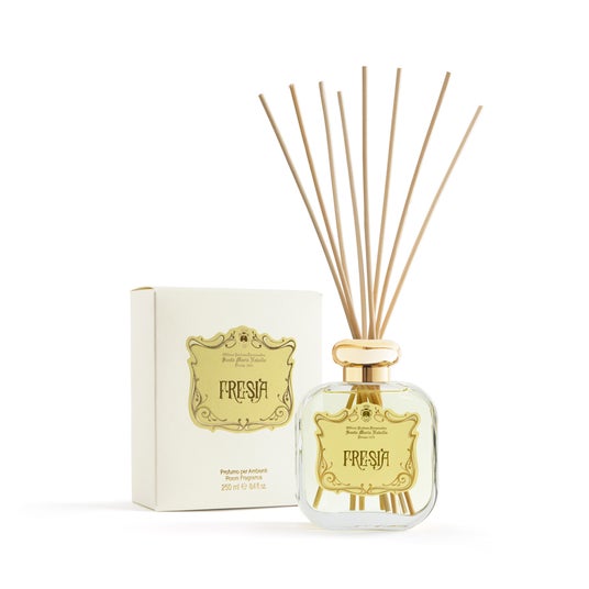 フリージアサンタ・マリア・ノヴェッラを代表する香りのひとつであるフリージアの繊細な香りは家中のどのお部屋にもマッチするでしょう。南アフリカ原産のフリージアの花の物語をローズ、バイオレット、ムスクたちが繊細なハーモニーとともに伝えてくれます。「神秘」と「未知の魅力」という花言葉を持つフリージアの爽やかで優美な香りをお楽しみください。